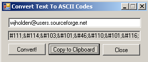 The conversion algorithm is extremely simple. I basically noticed that an HTML ASCII code consists of &#x;, where x is the integer value of the character. Using C these values are really easy to get by converting a char datum to an int.